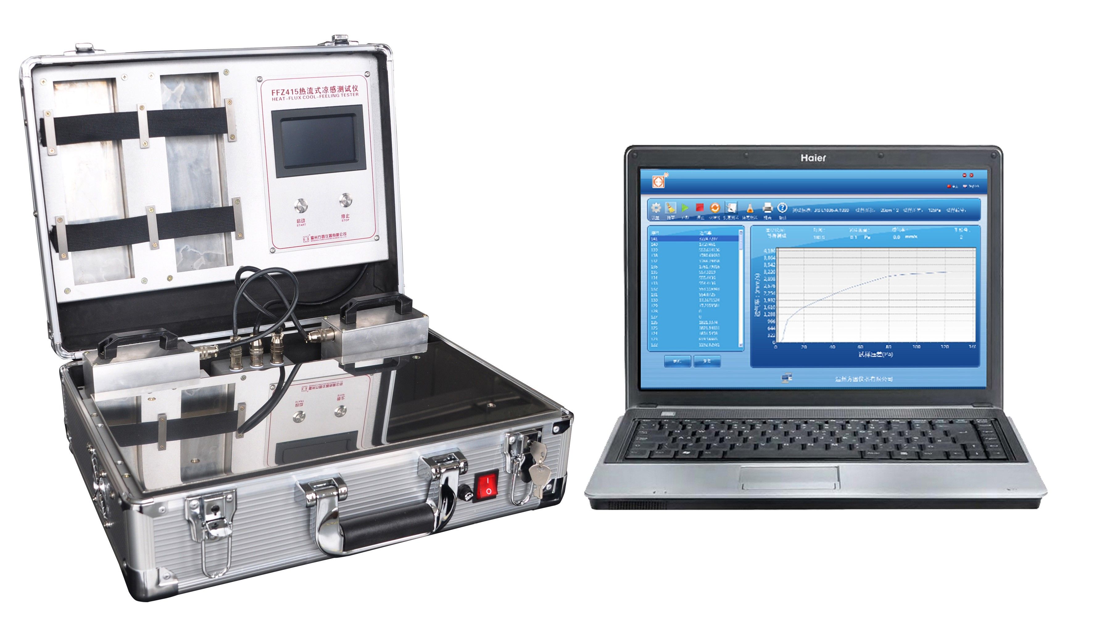 涼感制品越來越多,其質(zhì)量檢測(cè)刻不容緩。我公司根據(jù)CN201510574661.X-熱流式織物涼感測(cè)試設(shè)備及測(cè)試方法,自主研發(fā)的FFZ415熱流式?jīng)龈袦y(cè)試儀,可對(duì)織物接觸瞬間涼感Qmax值進(jìn)行測(cè)試,又可對(duì)織物持續(xù)散熱值進(jìn)行測(cè)量。反映各類涼感材料綜合的散熱性能。