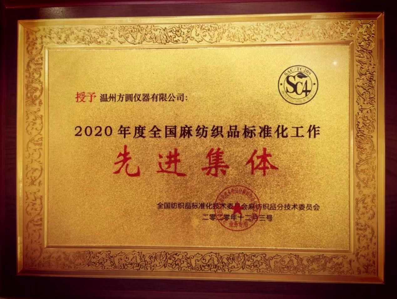 中國麻紡行業(yè)協(xié)會會長、全國麻紡織品標(biāo)準(zhǔn)化技術(shù)委員會董春興主任作了麻紡行業(yè)的形勢分析,同時也對麻標(biāo)委接下來的工作安排提出了要求。本次大會還表彰了2020年度標(biāo)準(zhǔn)化工作先進單位、先進個人和優(yōu)秀觀察員。溫州方圓儀器有限公司憑借多年以來在紡織行業(yè)的突出貢獻被評為2020年度全國麻紡織品標(biāo)準(zhǔn)化工作先進集體。